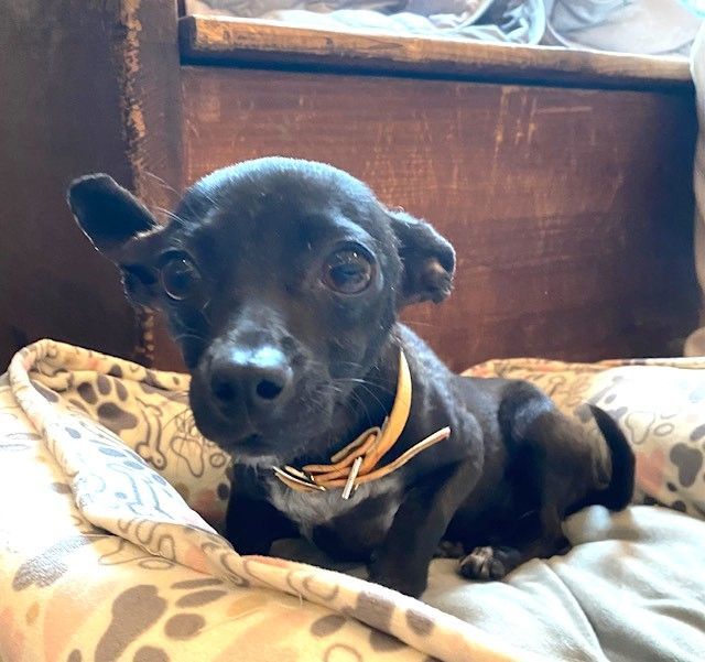Now, this playful 6-pound young girl is as happy as can be. She loves all humans and all dogs as far as we can tell. She’s a young adult and she’s looking for love!