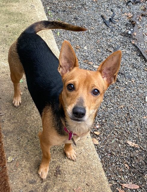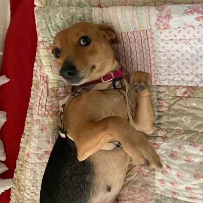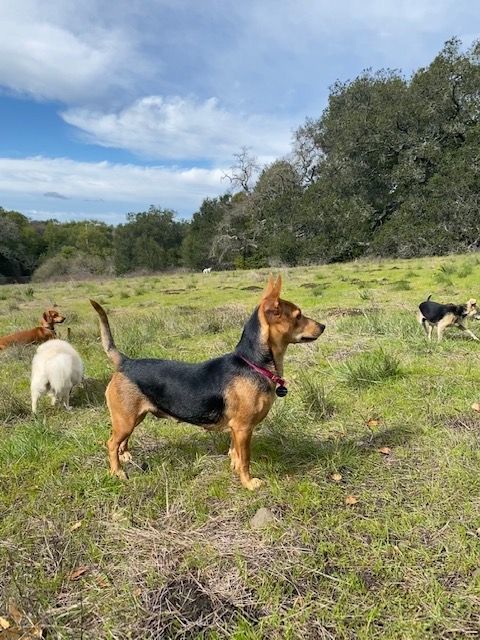 Bella seems to like all other dogs and all humans. She barks at new people but warms up as soon as she knows they are not a threat. She would make an amazing guard dog because her (infrequent) bark sounds like a 100-pound dog but she is only 25 pounds. Bella doesn't roam and stays close to her human guardian, but she does love to run at top speed with the other little troopers. She's smart and she loves affection.