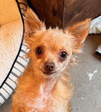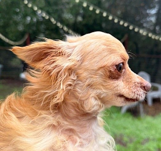 Oh boy. Blitzen is appropriately named because he is a fireball of energy, love, enthusiasm and kisses. He can climb fences and will do just about anything to stay with his people at all times. You would never know he is 8 years young since he has the energy of a puppy. He’s barely 6 pounds so he can travel everywhere easily and will insist on doing so.