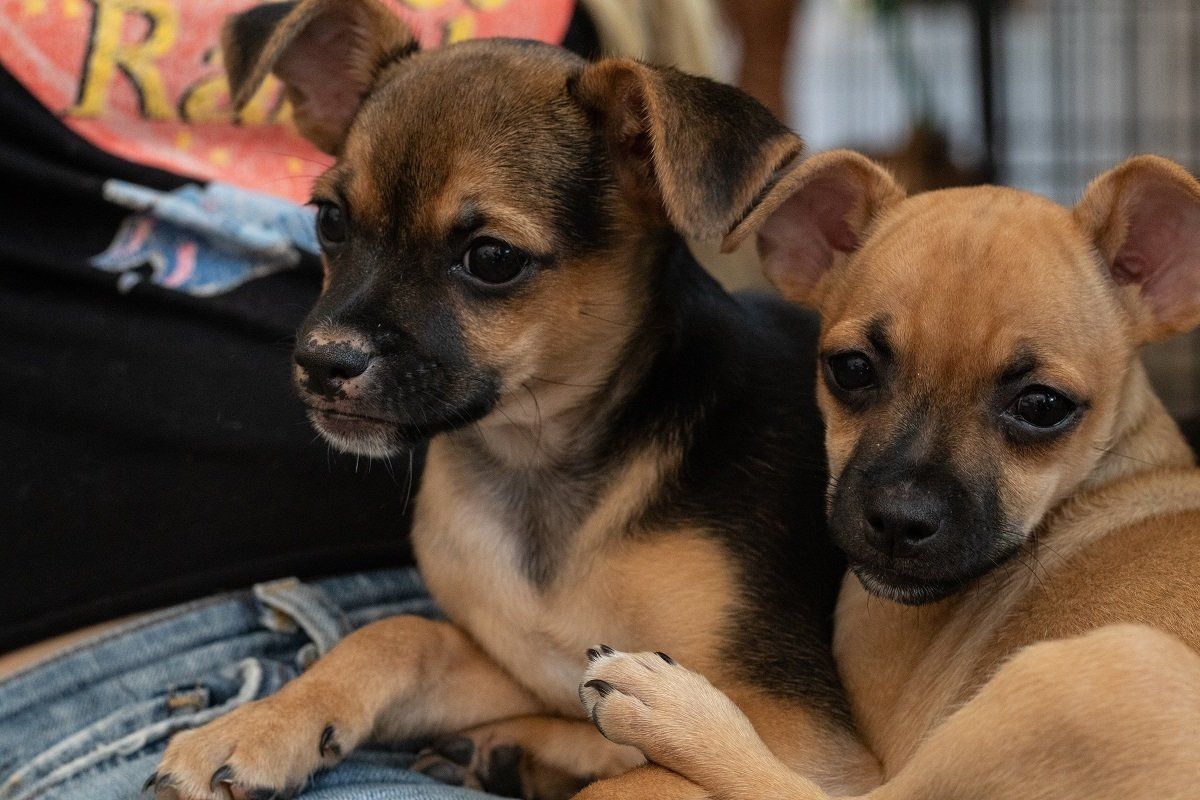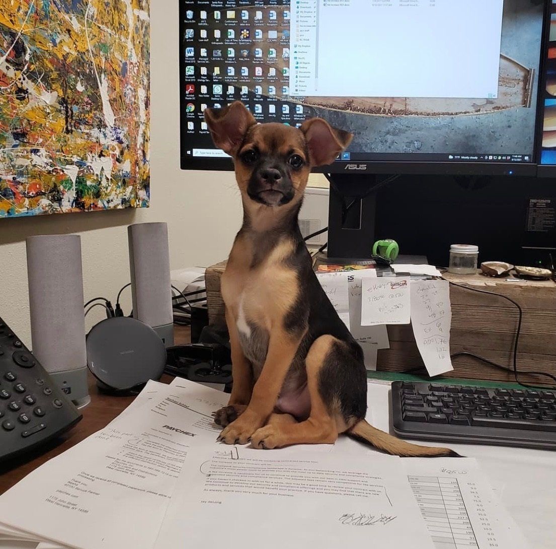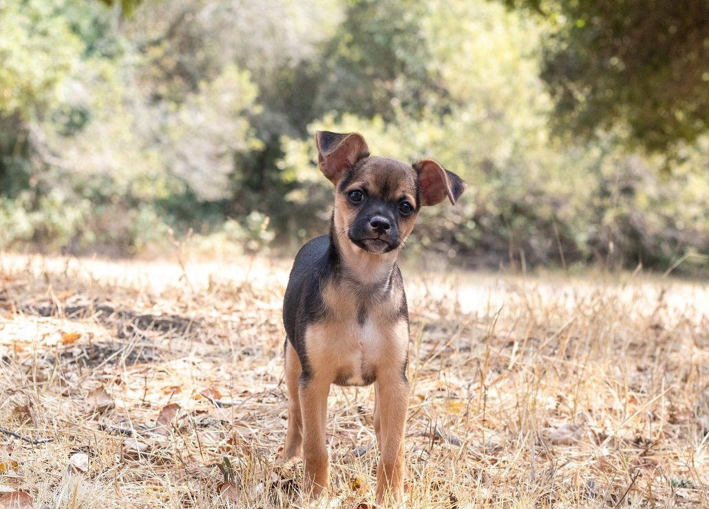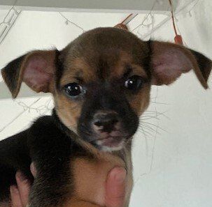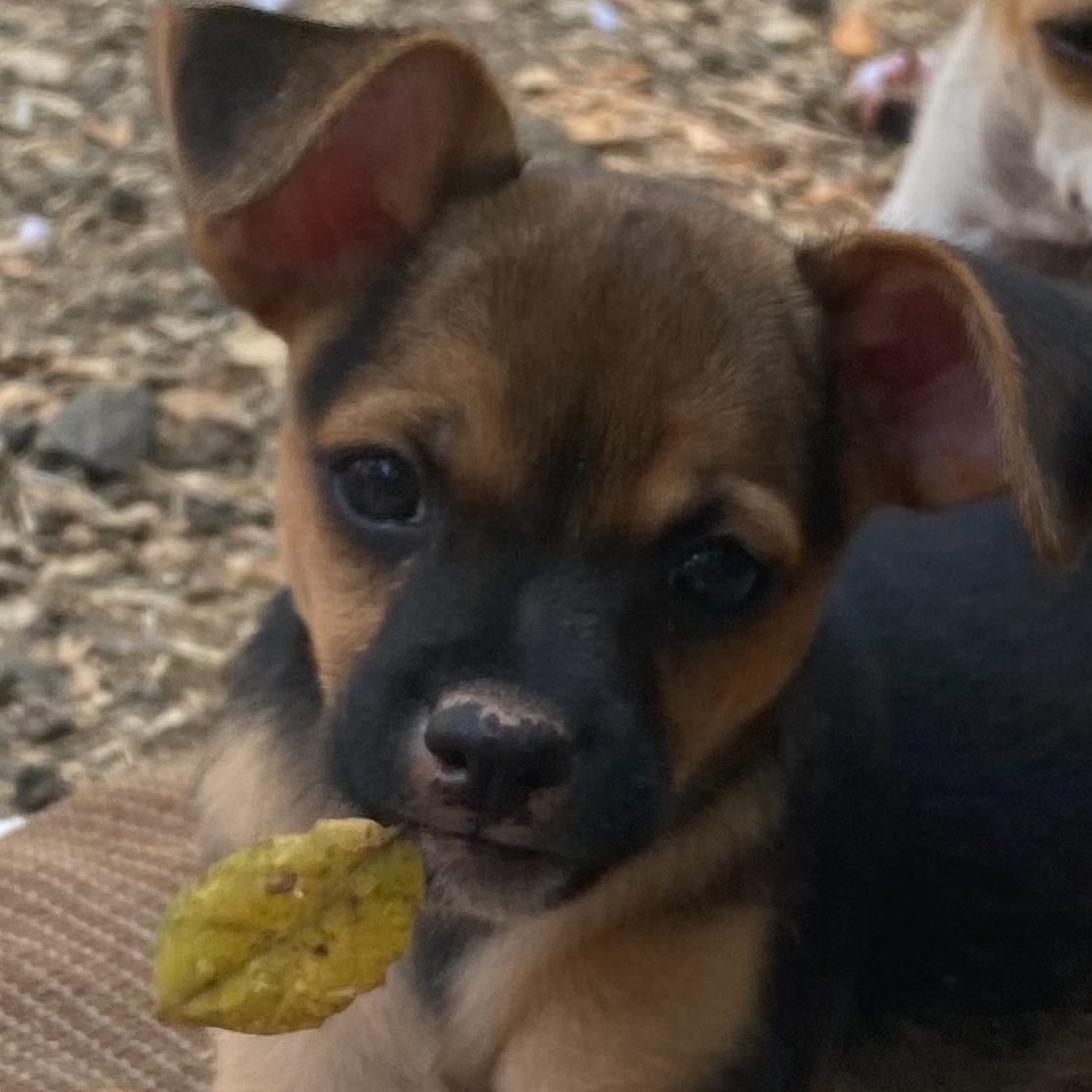 Little chunker Bruno has the looks and the personality of a big dog. at 6 lbs, we don't expect him to be much more than 10 lbs full grown but his super chill vibe makes us think he's a big older dog in a little dog's body. His coat is thick and soft and the markings on his face and nose are to die for!