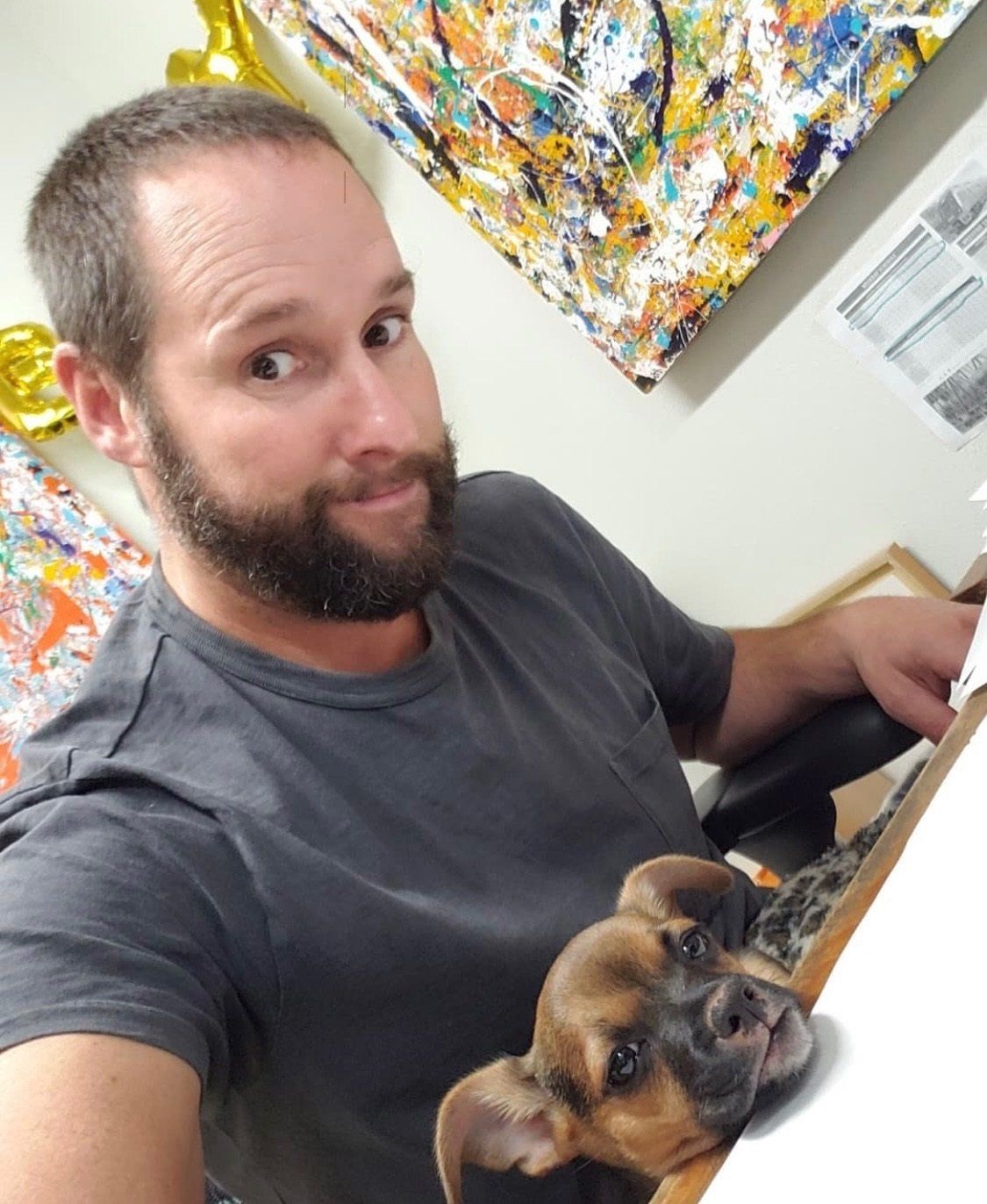 When Dad dropped Bruno off to go to the vet, Bruno took one look and jumped back into their van!! It’s mad love. He has the best home possible.