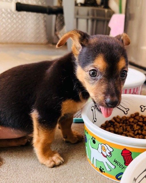 At just 4 pounds and almost 8 weeks old, Cameron's mama was a long-haired black fluffball. This is all we know about her humble beginnings in the Central Valley but we are here to create her fabulous future! We’re not sure if her ears will stay floppy but we are sure that she is solid gold and perfect in every way. Her favorite things to do are play and sleep. Her hair is medium fluff and her personality is large love-bug.
