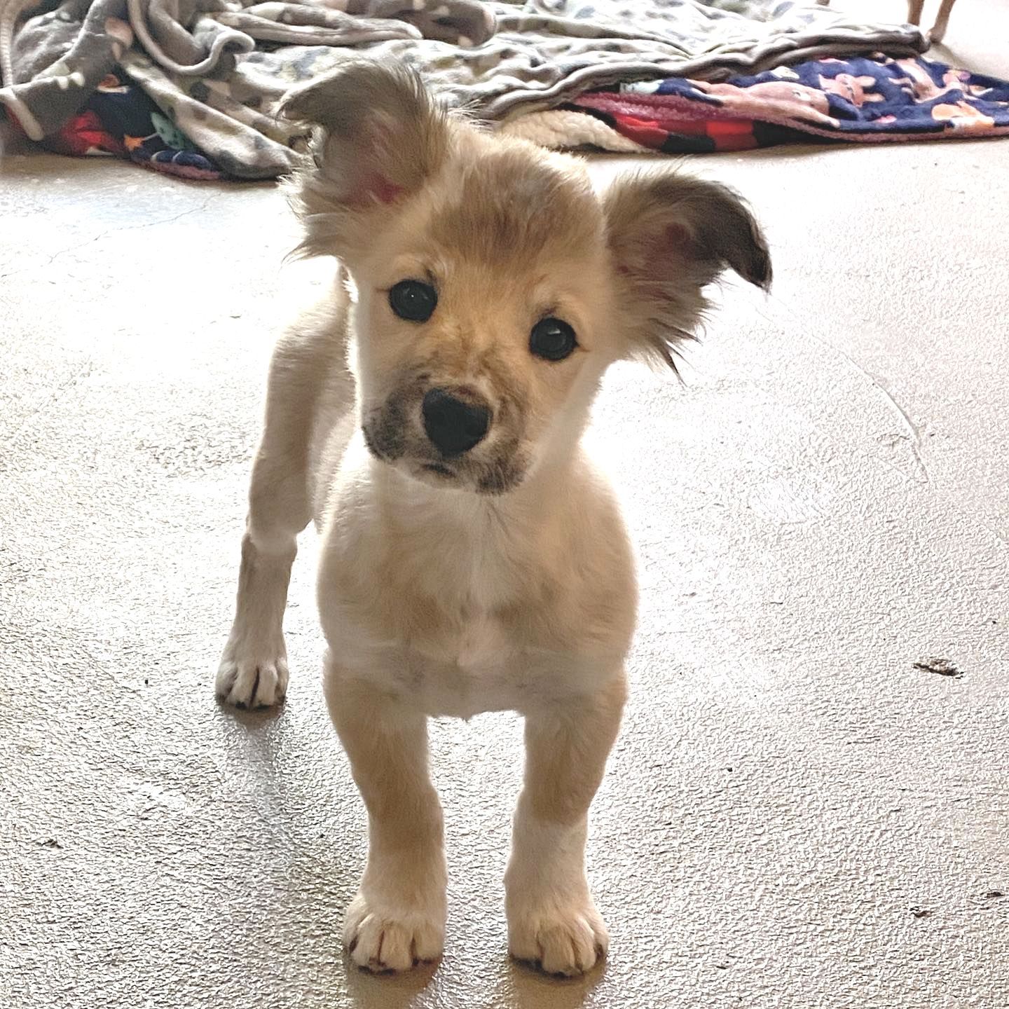 This little girl is playful, spunky, and independent! Her markings are to die for and she's super entertaining. Coyote's black tail and black nose make her very unique as a doodlebug. (our breed invention). Her mom was a low-rider poodle but we don't know much else. She's around 3 months and 6 pounds of fluffy sweetness.