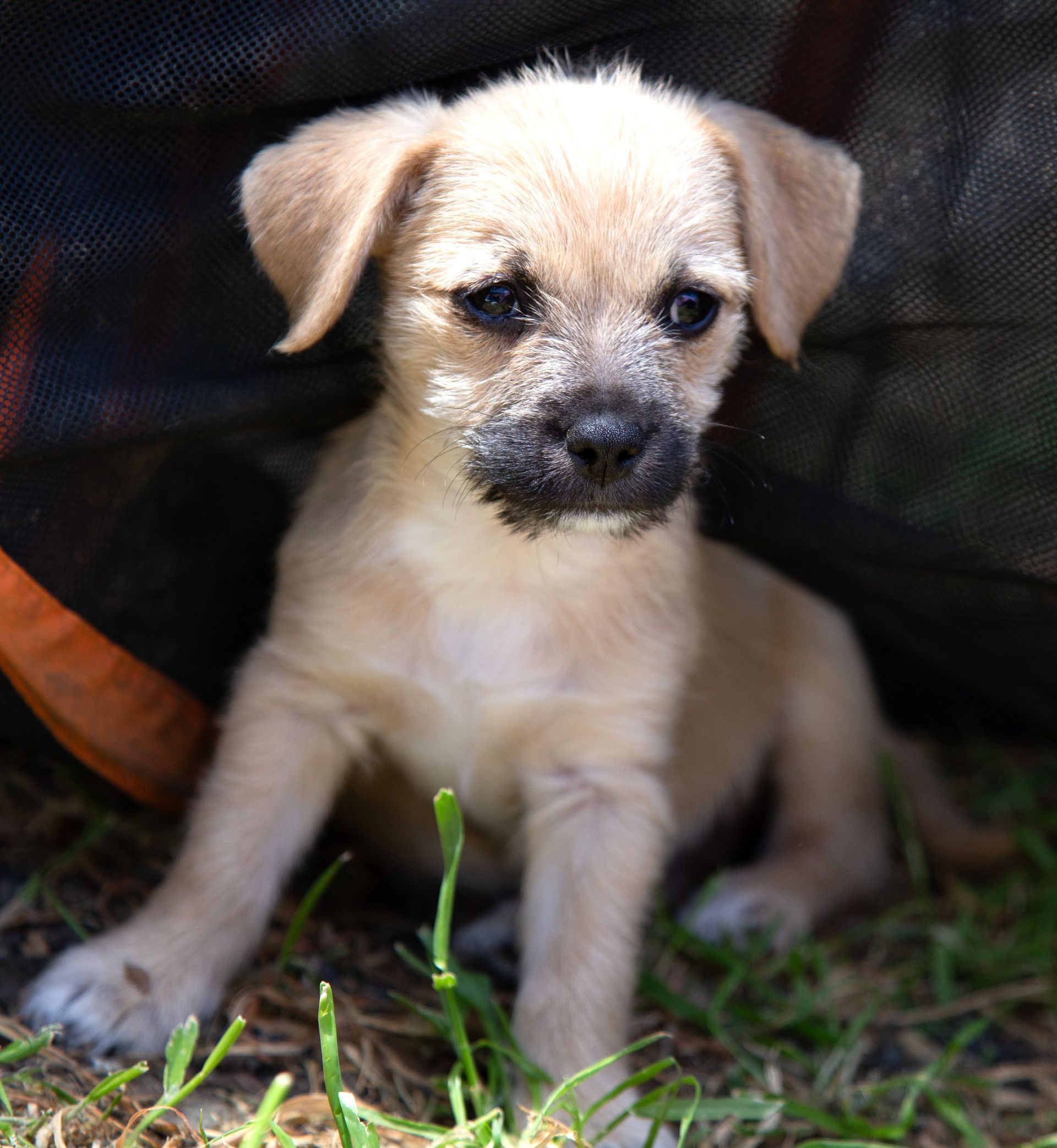 We figure he’s a terrier mixed with angel. His little black snout and guyliner will melt your heart.