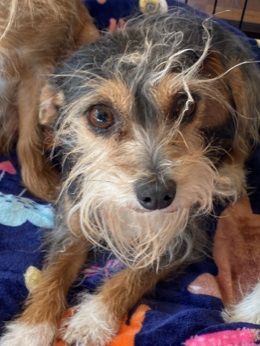 We think Fudge is between 2-4 years and she’s just 7 pounds, but we know that Fudge gets along great with other dogs and seems to feel the same way about all humans. She wants our love but is still a little nervous.