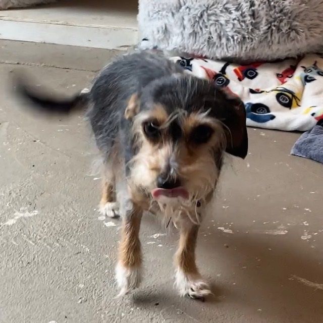 She may be the cutest little trooper yet. Fudge is the smallest of the four terriers we took in as an owner surrender. They were living in a crate in a room for over a year so they’re just now learning about the world.