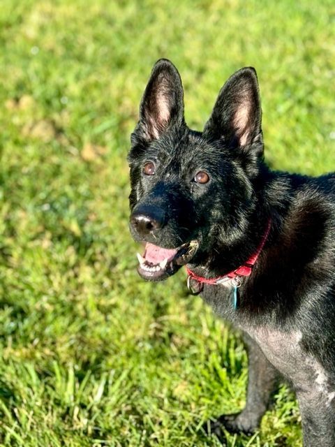 Gracie weighs about 50 pounds but still needs to gain some weight. Her foster mom is training Gracie not to dash out of doors but otherwise she does everything right. She's housebroken and eager to learn. She loves to play with other dogs and has loads of energy. We think she's around 2 years old.
