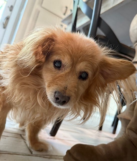 Gus is the sweetest little golden bundle of teddy bear preciousness, with just a smidge of honey badger. He's golden in years with a sad cauliflower ear from a lifetime of chronic infections and scratching. His hearing, eyesight, and mind are starting to fade, but his attitude and heart are strong. You can imagine our excitement that he will spend the rest of his days with one of our most wonderful former adopters and two older little troopers. He could not have landed in a more perfect home.