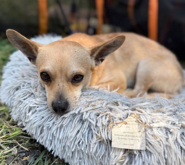 Our boy Kevin came to us with his BFF Tessa. They were living in a very sad situation by a river in a pen by a homeless encampment. They had very little exposure to humans and were terribly neglected. We think Kevin is around 4 years old and he is 12 pounds of personality. This little ham is learning how to live life to the fullest at LTR. He loves the other dogs, the horses, the goats, the fields, the toys, the house, the shelter, the barns and his foster mom. He basically loves everything. It’s as though he just realized life can be beautiful.