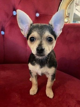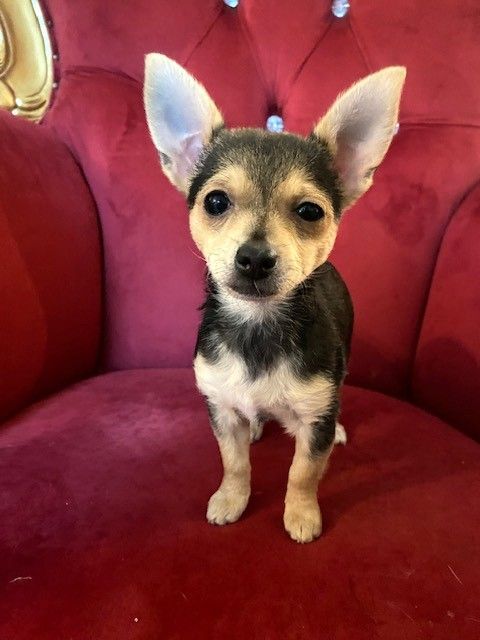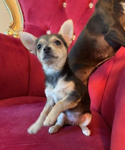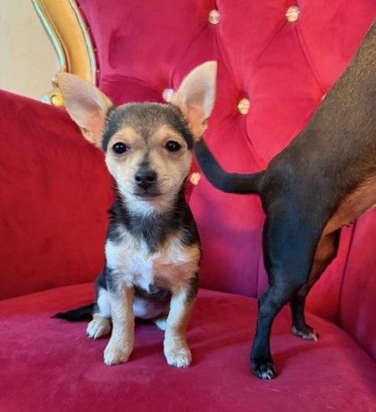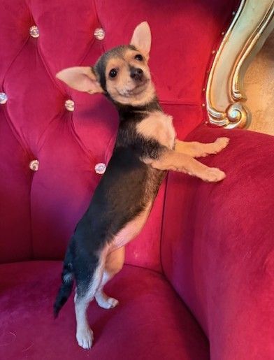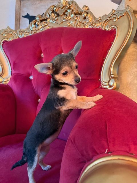 She's the only girl in her litter of 4. Lemur is also the most shy, but she loves to sit on your lap and snuggle. This fuzzy bunch is around 3 months old and they’re all around 4 pounds. They have the coolest hair, it’s kinda thick and curly in spots and their tails have twisted hair all the way to the end, like a spiral. They’re absolutely gorgeous puppies so their parents were likely stunning but we don’t know anything about them. We joke that they may be toy Rottweilers (it’s not a thing) because that’s the best way to describe them!