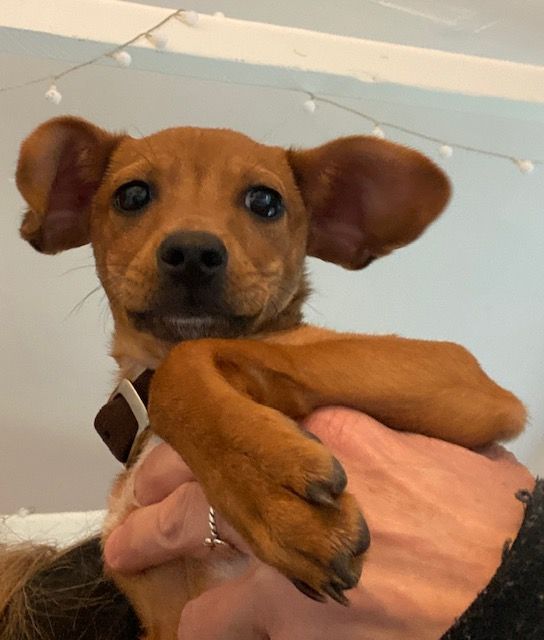 Found on a ranch, inside the fence by the road where he was dumped, Luke was left with an old pair of sweatpants and a bowl of food. He's a baby and he was very skinny when we first got him. We think he's around 5 months old. Luke has a lot of energy so he would do best with another dog to keep him busy. He's good with all of the dogs at LTR and he is not a flight risk. He barks at the cat but stops as soon as we ask him to stop. Luke is a good boy; he loves affection but needs some basic training