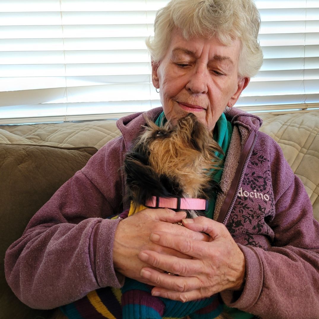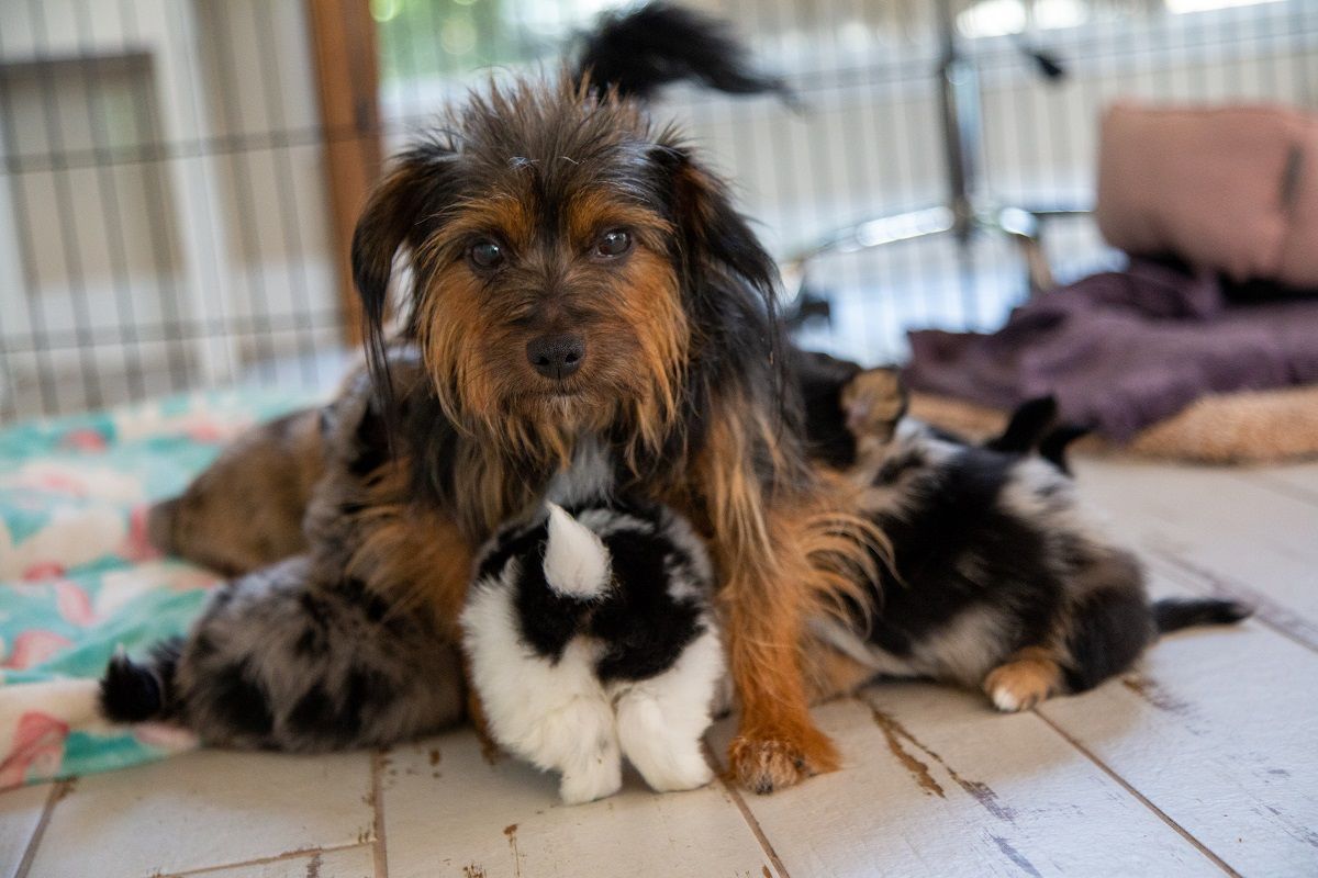 She is the toughest little dog you will ever meet. She survived some terrible injuries while nursing and raising a litter of 10 puppies. 10 puppies is a lot for a little 12-pound dog and she did it all with a broken back and two breaks in her pelvis. We are so proud of her. She still loves to teach her pups how to play and she protects them diligently in all scenarios. If one of them squeaks, she appears out of nowhere to make sure her baby is okay. That being said, she is ready to be the baby and to move on to the next stage of life. We want the very best for her since she's had a tough road so far. She gets to run free here at LTR because she's not a flight risk and she loves to stay with the pack. Malibu is affectionate, she loves to sleep on the bed with her humans, and is incredibly intelligent. On top of all of this, she is gorgeous. The rust color in her hair is stunning in the sunshine and her eyes literally twinkle. She has nothing but love to offer.