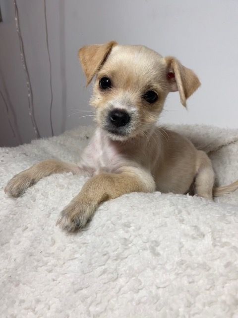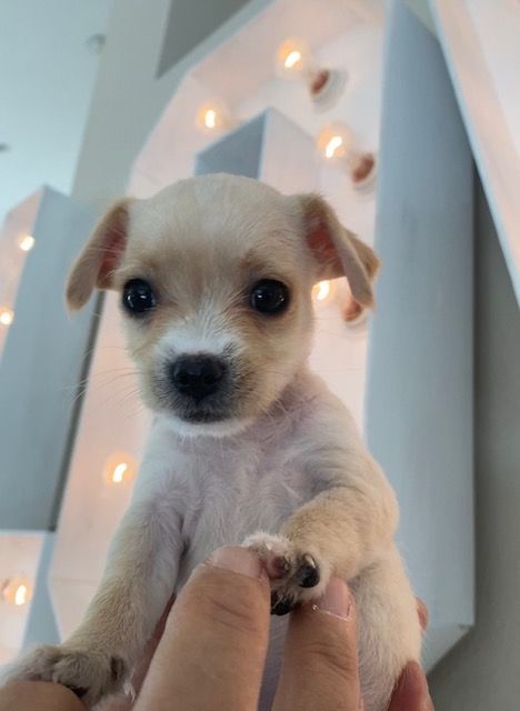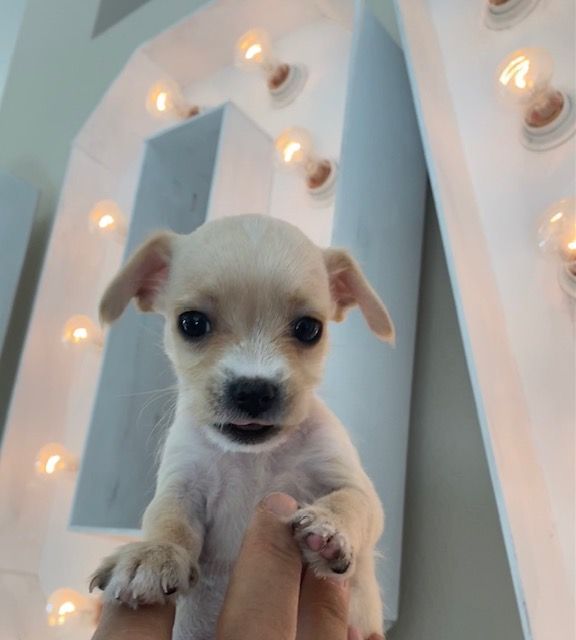 Marshmallow will probably run your world. She’s like the puppy version of Elle Woods. She’s brave, affectionate and smart. We don’t know anything about her parents but we guess she will be less than 12 lbs full grown.