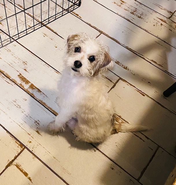 Mr. T is a puppy, so he has puppy energy but is not destructive. He will do best with another playful dog. Mr T is four months old, 8 pounds, neutered and fully vaccinated.