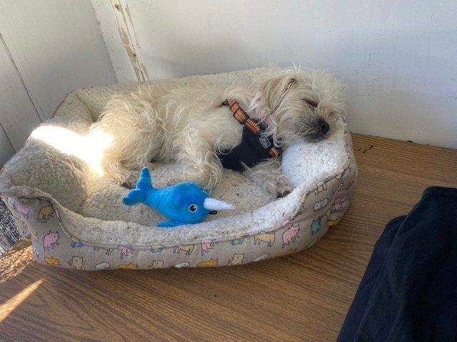 Nubé (Noo-bay, now Sponch), is joining the ranks of shop dogs around the world! She proudly runs a print shop with her new parents, Megan and Jesse. They love her so much and we could not be happier.