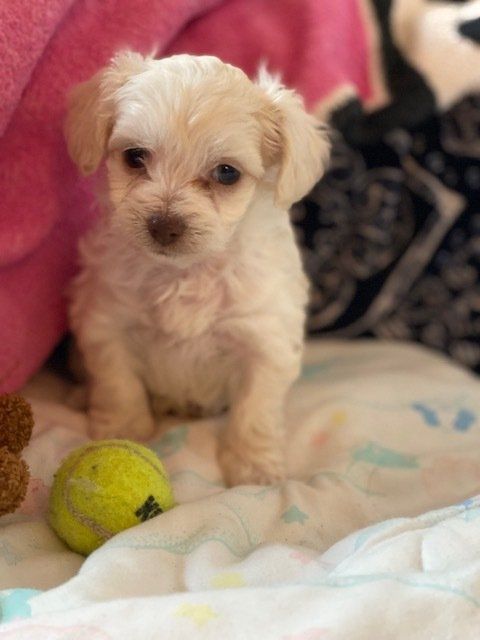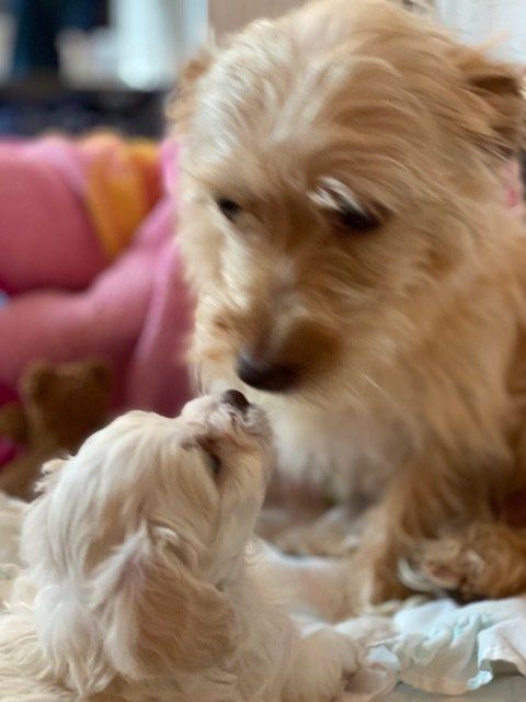 Despite his small stature, he has a big spirit and heart. He wrestles with the other pups and holds his own. He’s so soft and teeny, we love him!”