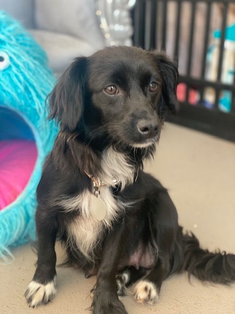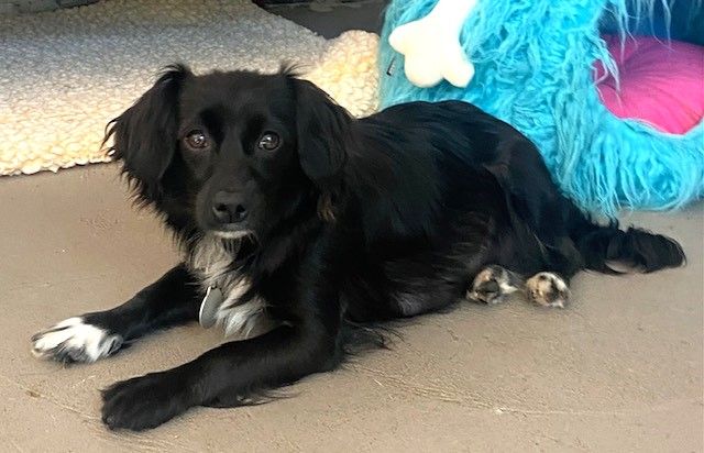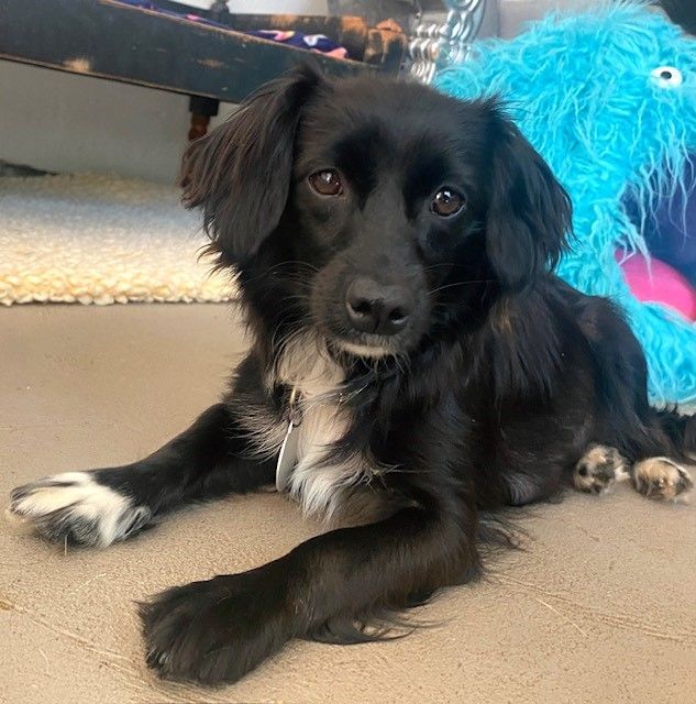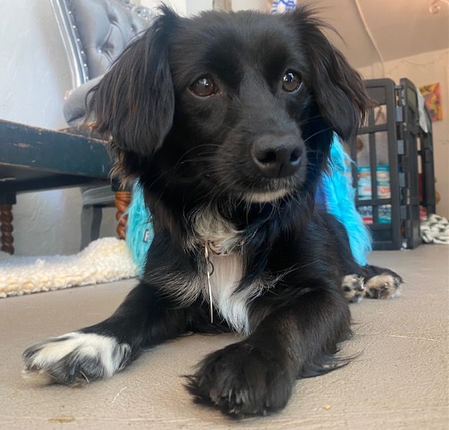 Named after the prettiest flower because she’s gorgeous and rare, Peone has the shiniest coat and the most beautiful heart. We believe this tiny spaniel mix must have lived under a building because she was filthy and terrified to be out in the open when she first arrived at LTR.