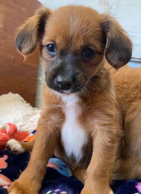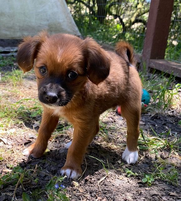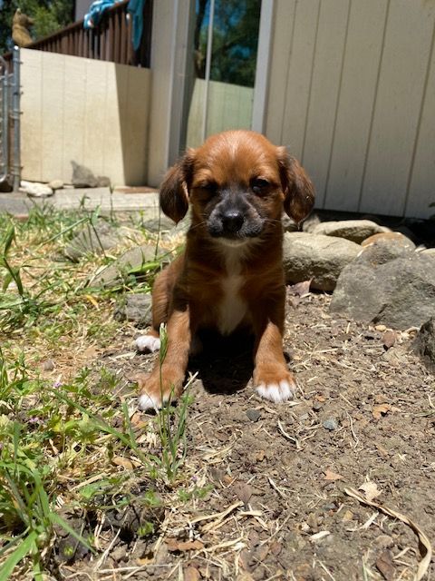 She is 3 pounds of 8-week-old soft squishy fluff. Prairie is a perfectly proportioned little stunner, not that we care about that stuff but we’re obligated to point out the obvious. She’s a bit laid back compared to some of her siblings but she will dazzle you with her puppy cuteness and sweet personality. Her mom is 13 pounds and we don’t the dad.