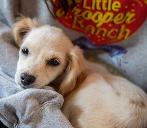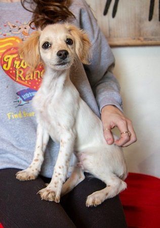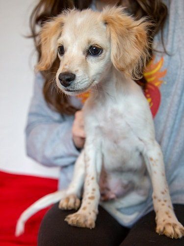 This two-month-old spaniel mix is playful and full of love love love. Like all babies, he has lots of energy and likes to be with his people most of the time. He was intimidated by the other dogs in the shelter so we've moved him inside the home. He was in foster care in Texas so he knows nothing but comfort and love. The perfect puppy.