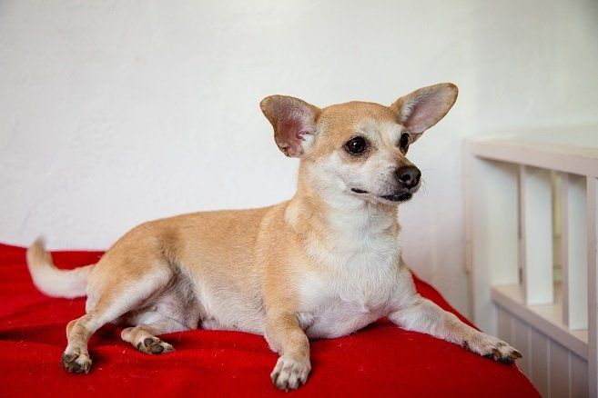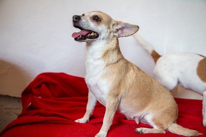 This 4-year-old chihuahua mix is the most social of this batch of dogs that were rescued from a hoarder's home. She is brave and kind and loves to snuggle up with anyone who comes into the shelter. This girl is a love, that's all there is to say.