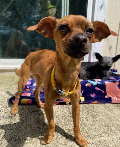 She is a love monkey. Sally is the teeniest sweetest little muffin you will ever meet. She’s a bit love starved and food starved but we’re working on both. This little angel was in a scary shelter until we snatched her up. She’s barely 5 pounds and barely a year old. She loves everyone and everything. She’s athletic and cute and we’ve never heard her bark. She needs a warm home with a lot of love. No small kids, cats are probably fine, she loves other dogs and all humans.