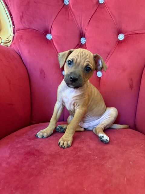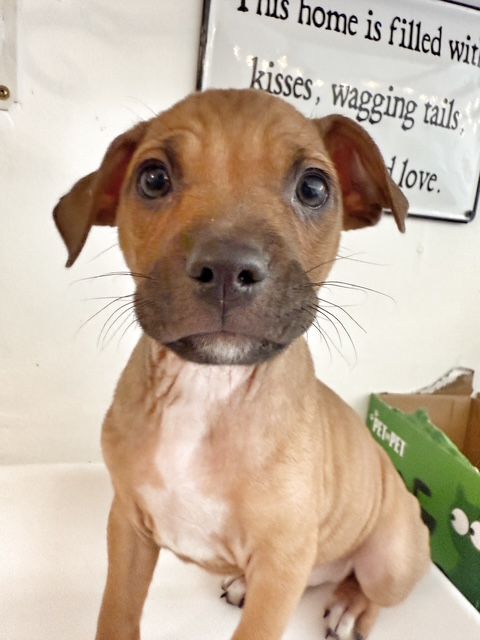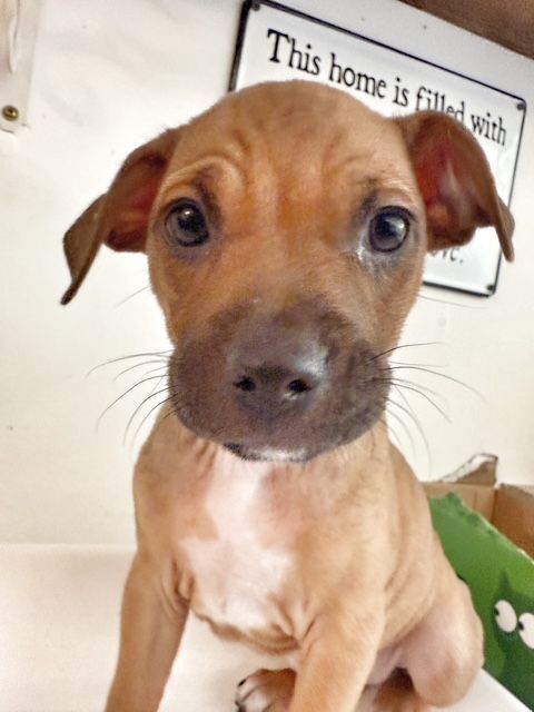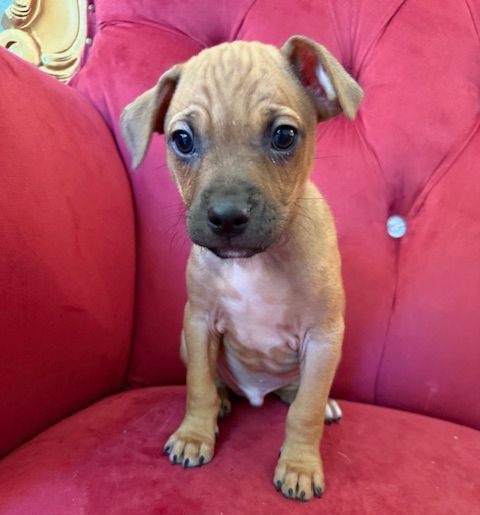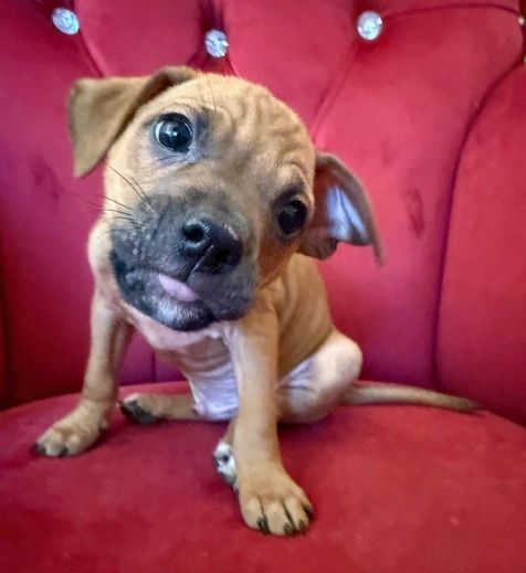 Sedona's wrinkly head makes him super expressive. He's nailed the "sad puppy eyes" look and we all fall for it. He will gaze his way into your heart. We think these pups are around 2 months old and we have no information on their parents but we guess Sid and his siblings will grow to be around 15 pounds.