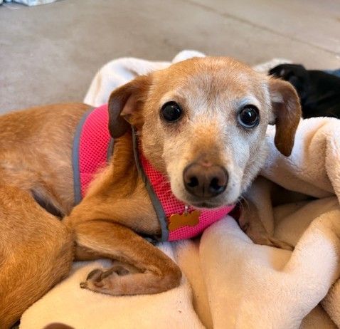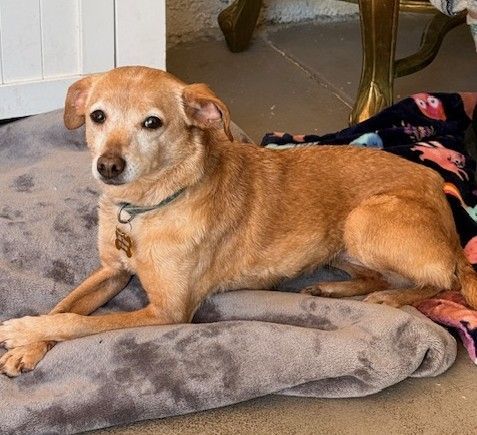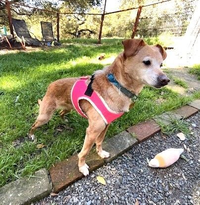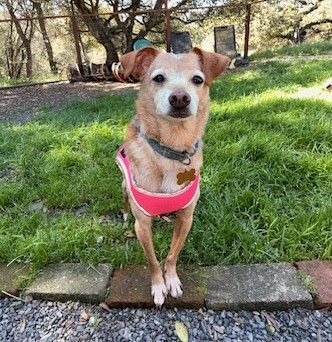 This little girl's human mom died, and she was left alone with her dog siblings. Luckily she found her way to us and is thriving with the other troopers. Skye is a playful 8-year-old lapdog. She’s a tall lean 12-pound beauty who loves to be with her people and sleep in their room. Her favorite thing to do here at LTR is to curl up on the laps of the volunteers.