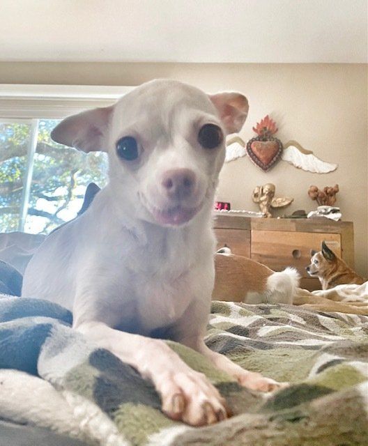Snowball and her loveable sister have had a rough few weeks but they are finally returning to their adorable selves. It's so much fun to see their personalities evolve. Snowball is mischievous, charming and adorably manipulative. She glances at you from the side, without moving her head in your direction which always results in belly rubs because it's so adorable. Her favorite things in life include her sister Little Bit, electric blankets, belly rubs, flirting with other dogs, sleeping with her humans and crumbled up FreshPet dog food.