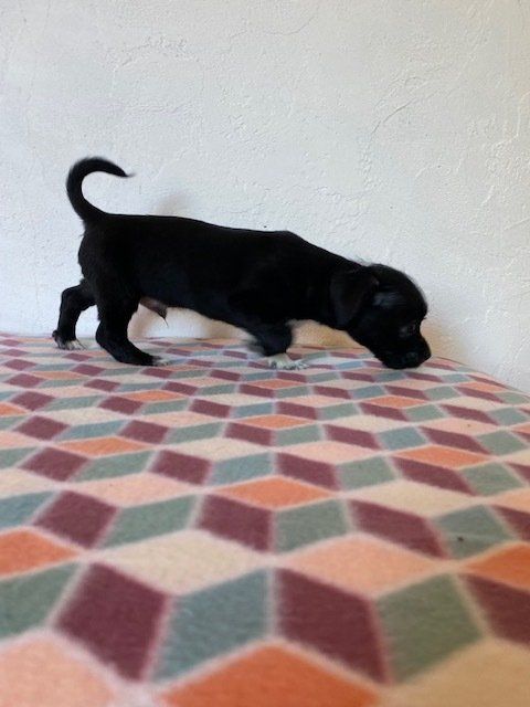We are dying over Spike's little beard. It's so funny to see a puppy with the features of an older more distinguished dog. This little 3-pound bundle of energy and teeth will keep you warm at night and entertained in the daytime. He's all puppy and is ready to be the apple of someone's eye.