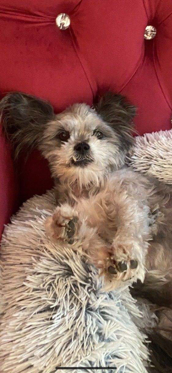 This gorgeous lady is always looking out for her best friend Ren. When these two came to us, they seemed to be closely bonded, but as we have observed them since their arrival, and as they have felt safer in our care, we are seeing that they have an independence which would enable them to go to separate homes. Stimpy loves to run and play with the other dogs while Ren stays close to his warm bed inside the house. They seem to be totally potty trained, they’re great with other dogs, cats and all humans.