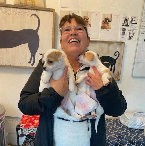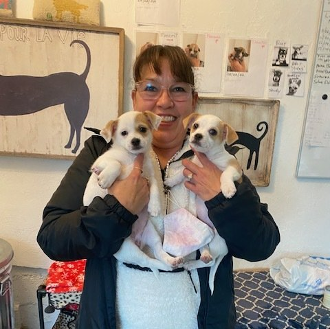Sugar Plum and sibling Pirate are home for the Holidays with their excited new human mom! We can’t wait to see them thrive!