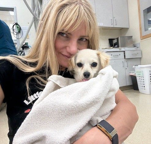 Check out this most gorgeous little 7 pound girl. Tessa is super soft and will cuddle and receive kisses when held, but she’s still afraid to be picked up. She came to us with her BFF Kevin who was even more terrified upon arrival. He has since warmed up but Tessa will need some time and patience to heal from her terrifying life.