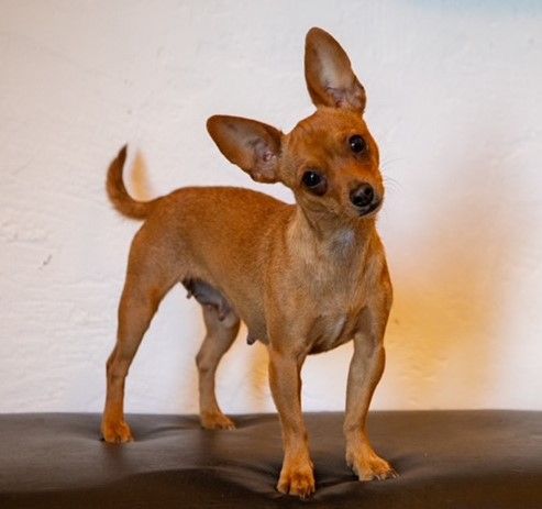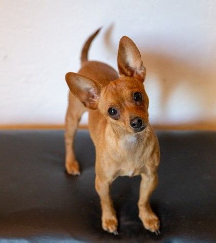It took her a while to trust humans and she still needs a little bit of extra time and understanding, since she’s been under-socialized for most of her young life. She loves to sit in the laps of our volunteers and she still enjoys time with her other two pups. She’s only 7 pounds and we’re guessing she’s around 1 year old.
