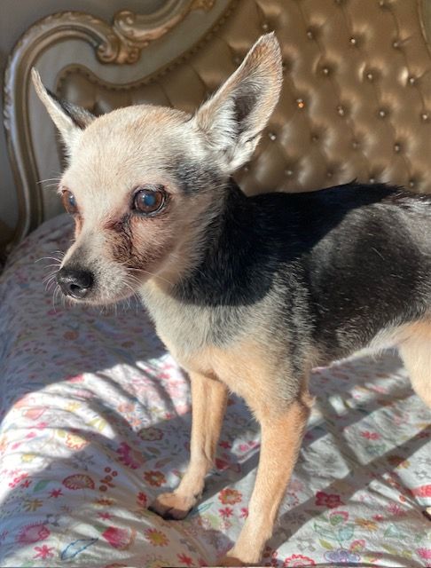 Twinkles is safe and loved and will never be in a shelter again. We found her facing a grave ending after a month at the Martinez shelter and we drove south to get her. After moving to LTR, she underwent major surgery to fix a badly infected mouth and to remove her uterus. Next she went to a warm cozy loving foster home and now this lucky little dog has found her wonderful forever home. A difficult road, but with a very happy ending for our little girl. This is why we do what we do.